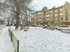 Двор отличается спокойной обстановкой, много зелени и цветов на балконе жителей этого дома.